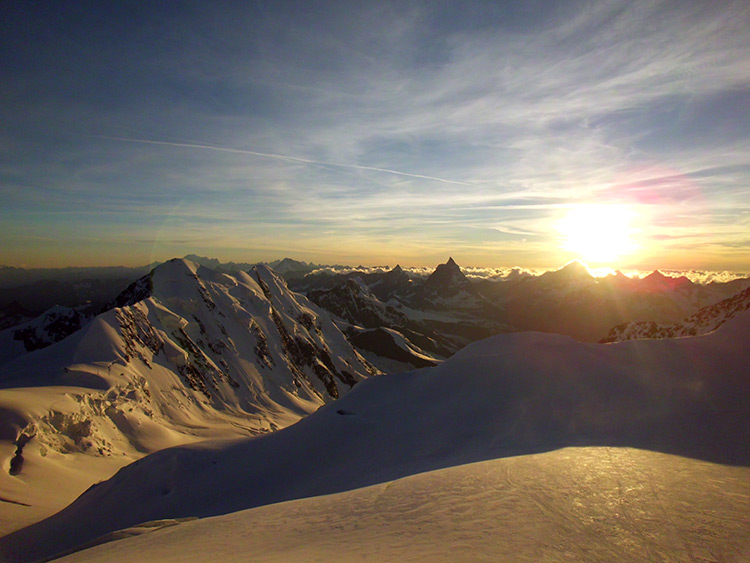 El Monte Rosa y la pernocta en el Refugio Margarita, eran las guindas del pastel, pero por el camino estuvieron el Monte Castor 4226mts., El paso del Naso del Liskamn 4272 mts., Piramide Vincent 4215 mts., Balmenhorm 4317 mts., Parrotspize 4336 mts., Signalkuppe 4554 mts. y Zumsteinspize o el hombro del Monte Rosa 4563 mts.